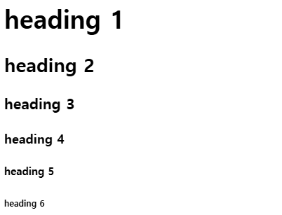 - heading 요소는 문서의 제목이나 섹션 주제를 나타내는 태그이다.